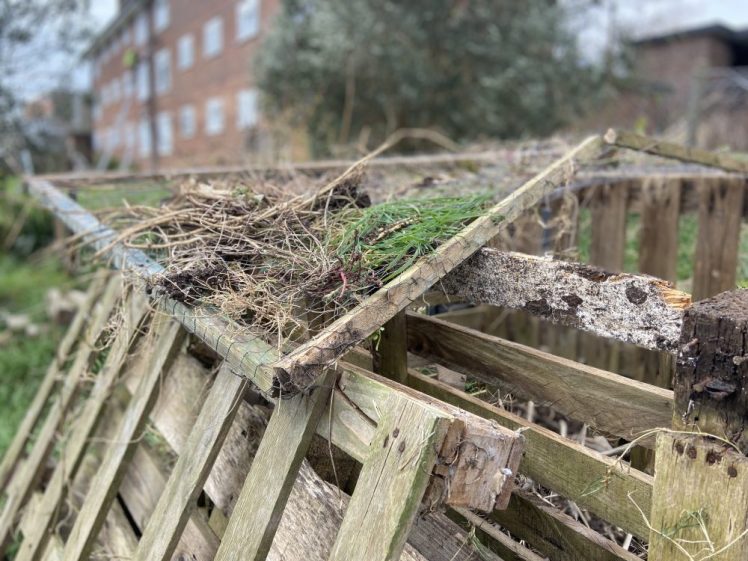 Drying out weeds before composting keeps the nutrients within the garden. Couch grass can be pulled out of the beds and thrown onto the path ways. Bindweed, Clevers, Creeping buttercup, Bittercress and Common chickweed are best left to dry. See RHS ‘How to identify common weeds‘ here.