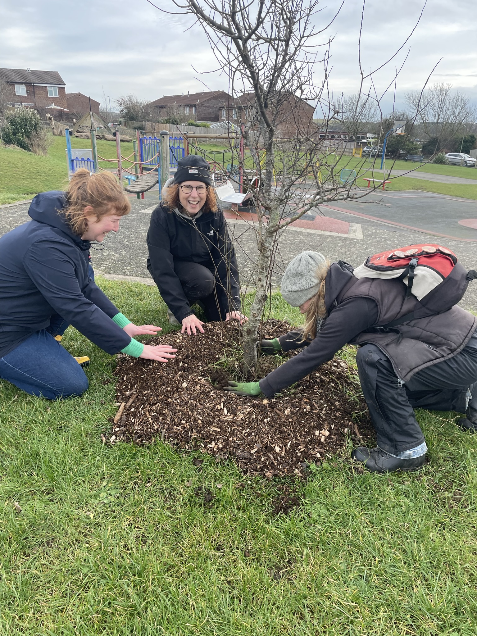 Tree Guardians took part in the Get Growing Harvest Festival by clearing the wildflower verge at the bottom of Hollingdean Park. Volunteers raked away the cuttings left by the mower and planted spring bulbs. All the cuttings were used as mulch around the nearby trees, helping to return nutrients to the soil. A big thank you to all the volunteers for their hard work!